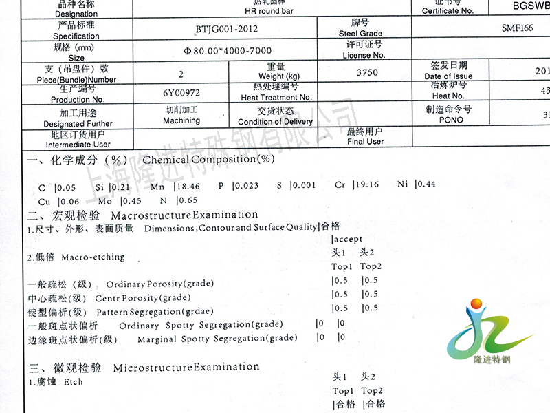 SMF166无磁钢锻件,无磁电渣重熔不锈钢,具有良好的低磁导率,高强度的机械性能和较好的耐晶间腐蚀开裂性能,用于制造无磁钻铤、无磁承压加重钻杆、无磁悬挂短节、无磁扶正器等无磁钻具,生产工艺严格执行API规范。